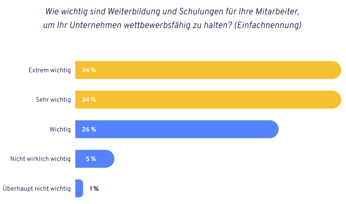 Die Realität der Angebote: Vor-Ort-Schulungen dominieren (60 Prozent), gefolgt von externen Fachseminaren (48 Prozent) und Zertifikatskursen (41 Prozent). Digitale Formate wie E-Learning (27 Prozent), Video-Tutorials (24 Prozent) oder virtuelle Live-Seminare (14 Prozent) spielen hingegen noch eine untergeordnete Rolle. Obwohl Letztere gerade für dezentrale Teams in unserer Branche ideal wären.